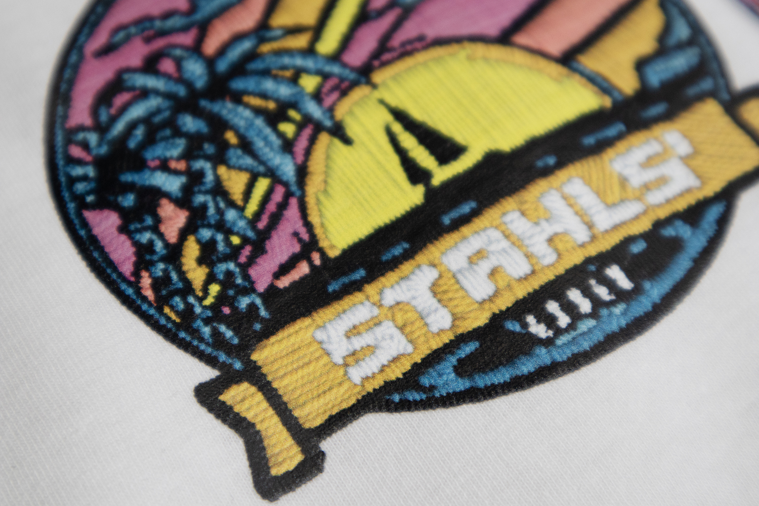 We have used two different designs that mimic an embroidered texture, both of which were extremely convincing. A single 10cm embroidered logo could take a machine up to 20 minutes to complete. Think how much time you could save by using a heat transfer that takes 12 seconds to apply.