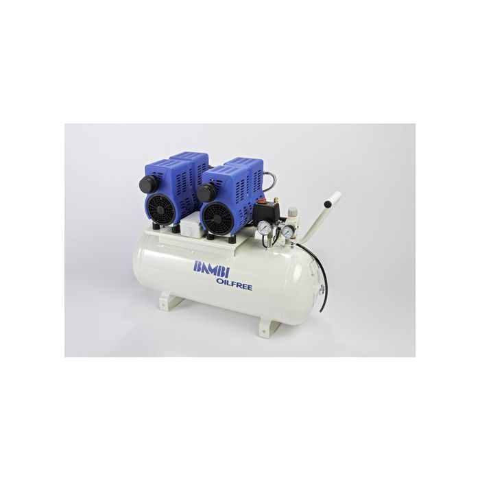 This Bambi compressor has been developed for those users where ultra low noise and relatively small flow of air is required. With sound levels of just 54 dB(A) and almost no vibration when running, meaning they can be located in the work area without causing any noise intrusion.