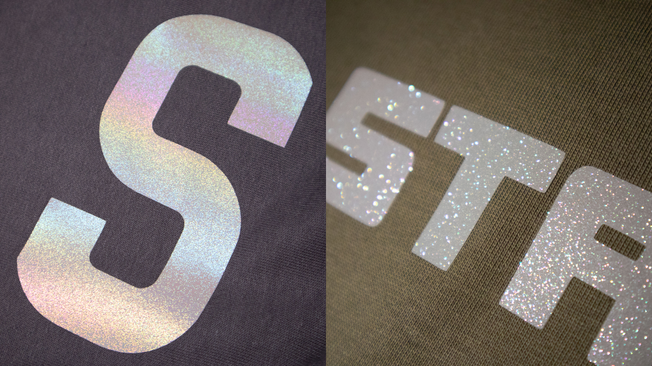 - Glitter HTV: Can be used layerd on top of Stahls' Sportsfilm Extra.