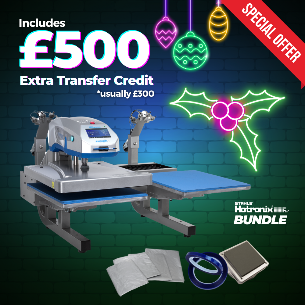 Get the Hotronix MAXX Clam Heat Press for your garment decoration business with £100 Custom Heat Transfer Credit.