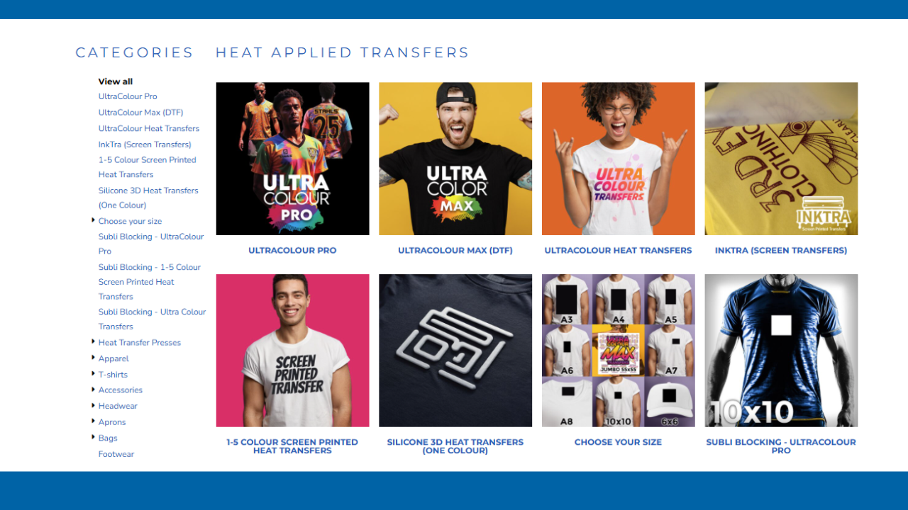 - Choose your transfer type: UltraColour, UltraColour MAX, or Screen-Printed Transfers