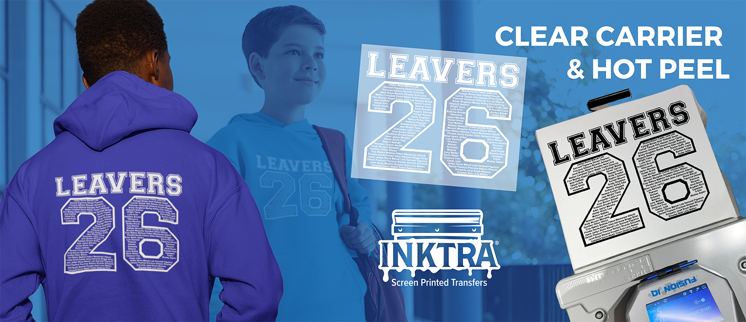 InkTra Screen Printed Heat Transfers are the best choice for this Leavers season. The clear carrier and hot peel speed up your workflow making production simple. The soft-hand feel is perfect for all age groups.