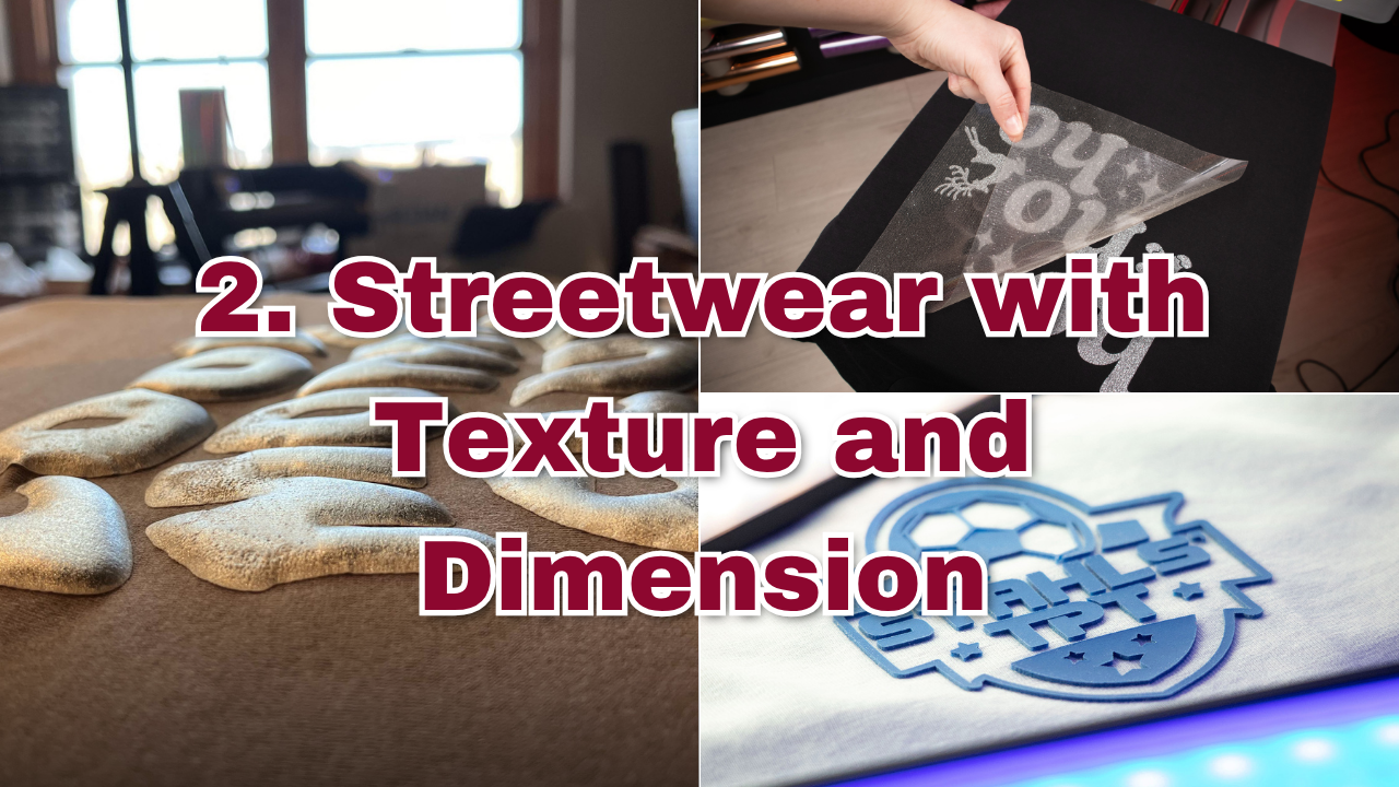 Texture is playing a big part in streetwear right now. Raised and tactile finishes instantly add depth and make designs feel more expensive.