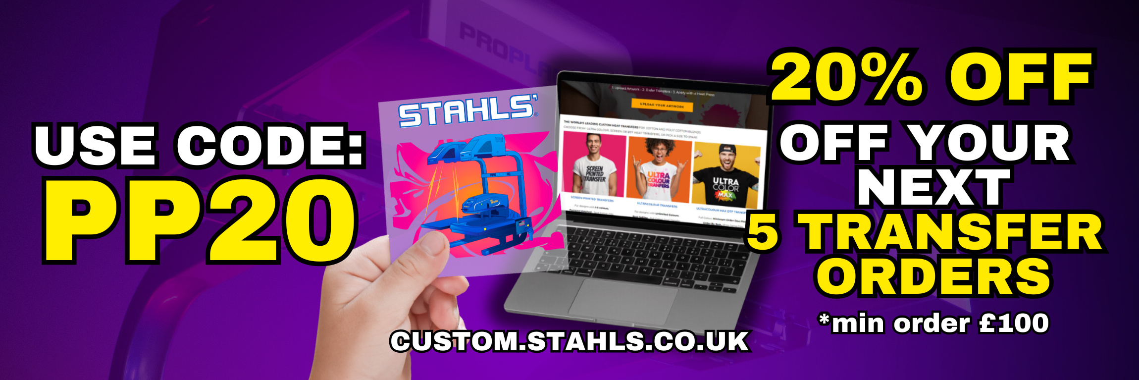 Get 20% off your next 5x Custom Heat Transfer orders with code PP20!